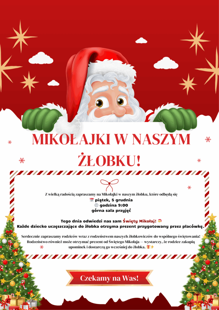 Odwiedzi nas Święty Mikołaj! Czekają drobne upominki i dużo uśmiechu.