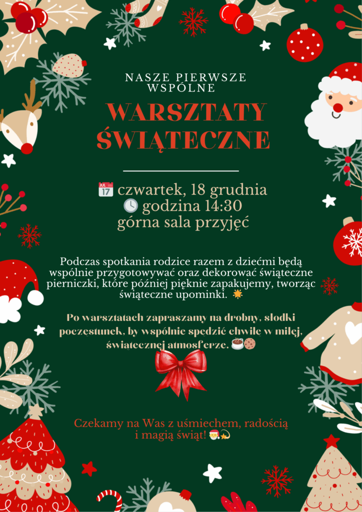 ✨ 18 grudnia – Warsztaty Świąteczne z Rodzicami