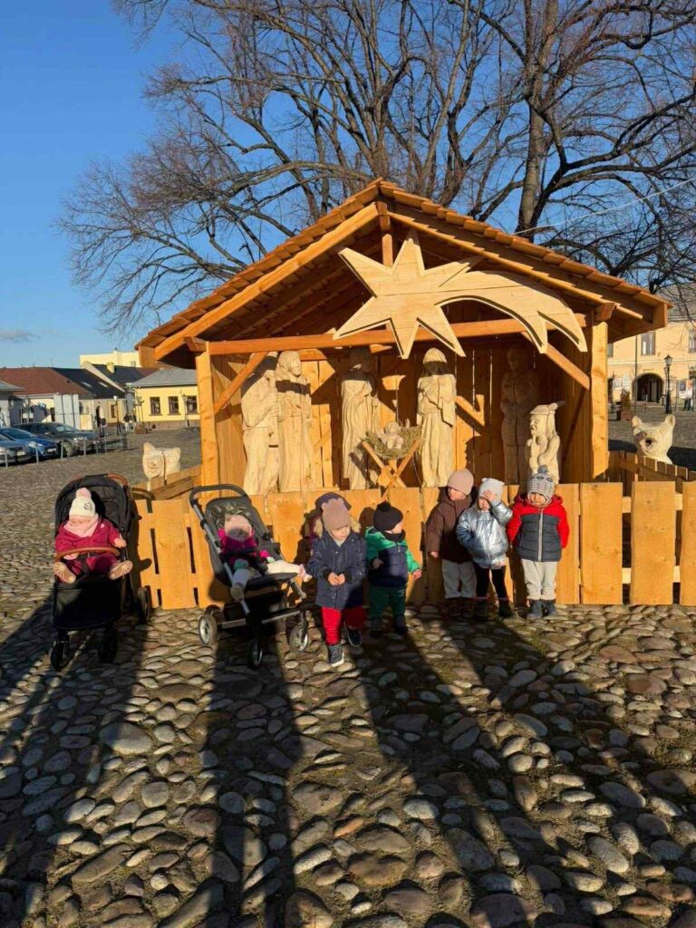 Podczas spacerów 🚶♀️🚶♂️ podziwialiśmy piękną choinkę 🎄✨ oraz szopkę bożonarodzeniową ⛪👶 na rynku w Starym Sączu 🏘️, co było dla dzieci niezwykłym przeżyciem 😍.