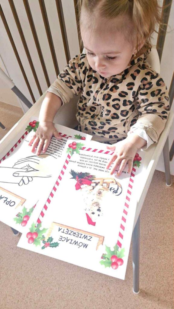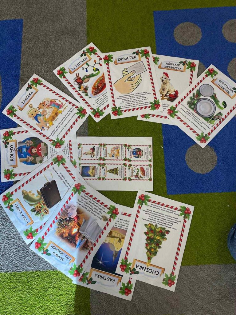Poznawaliśmy świąteczne tradycje 🎄📖, wsłuchiwaliśmy się w kolędy 🎶🎵 i rozmawialiśmy o bożonarodzeniowych zwyczajach ✨.