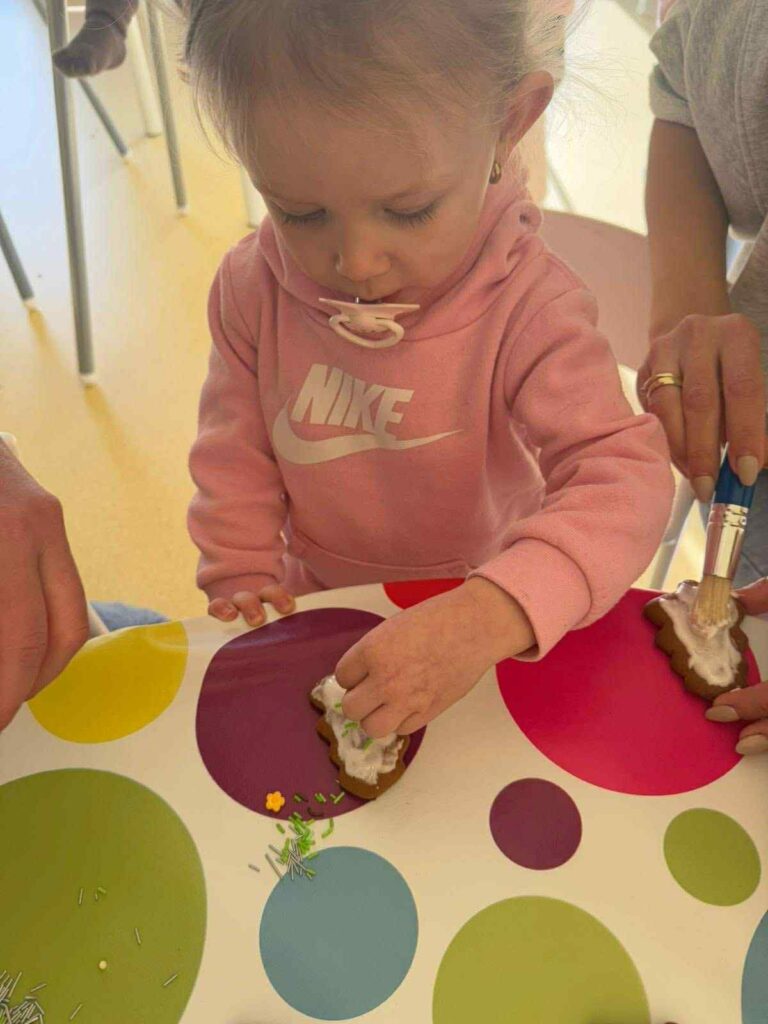 Odbyły się warsztaty pierniczkowe z rodzicami 🍪👨👩👧👦, pełne uśmiechów 😄 i wspólnej zabawy. Dzieci wraz z rodzicami i swoim rodzeństwem mieli okazję dekorować wspólnie pierniczki a na koniec odbyły się pamiątkowe zdjęcia z choinką i pierniczkiem.