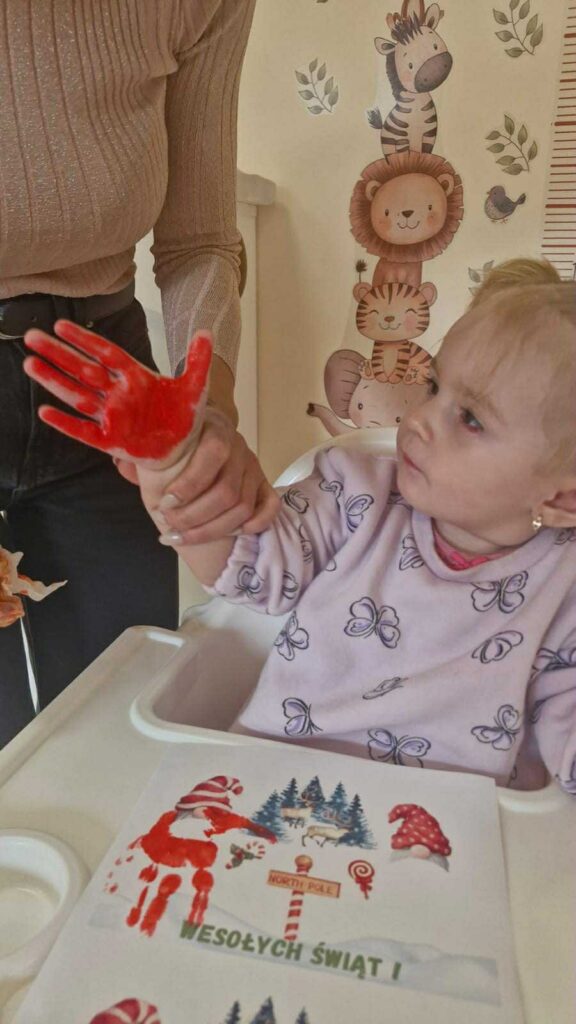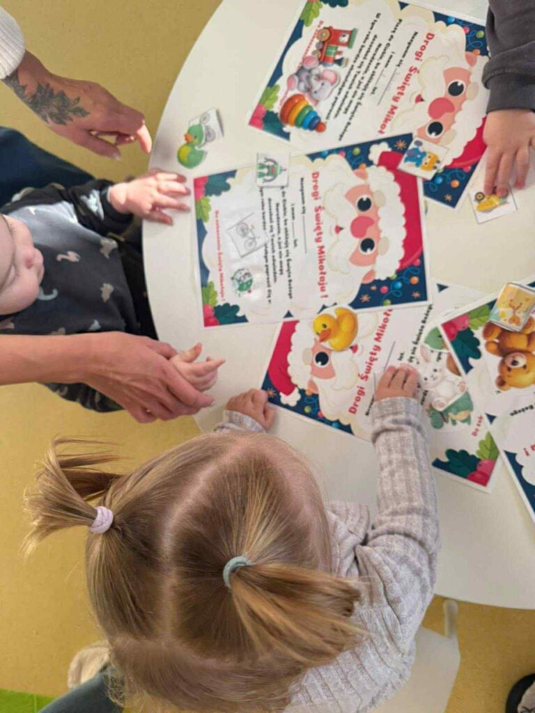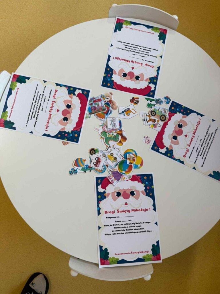 Jednym z najbardziej wyczekiwanych wydarzeń była wizyta Świętego Mikołaja 🎅🎁, który obdarował dzieci prezentami 🎀 i wywołał wiele uśmiechów 😍. Wspólnie pisaliśmy listy do Świętego Mikołaja ✉️🎅, ozdabialiśmy pierniczki 🍪, tworzyliśmy bałwanki ⛄ oraz świąteczne łańcuchy 🎄.