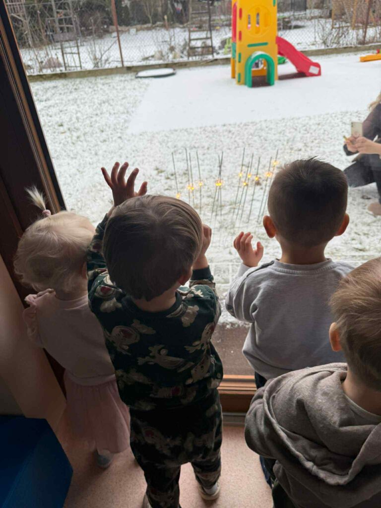 Miesiąc zakończyliśmy radośnie 🎊, organizując żłobkowego sylwestra. Dzieci w bezpiecznej atmosferze oglądały zimne ognie ✨, żegnając stary rok 👋