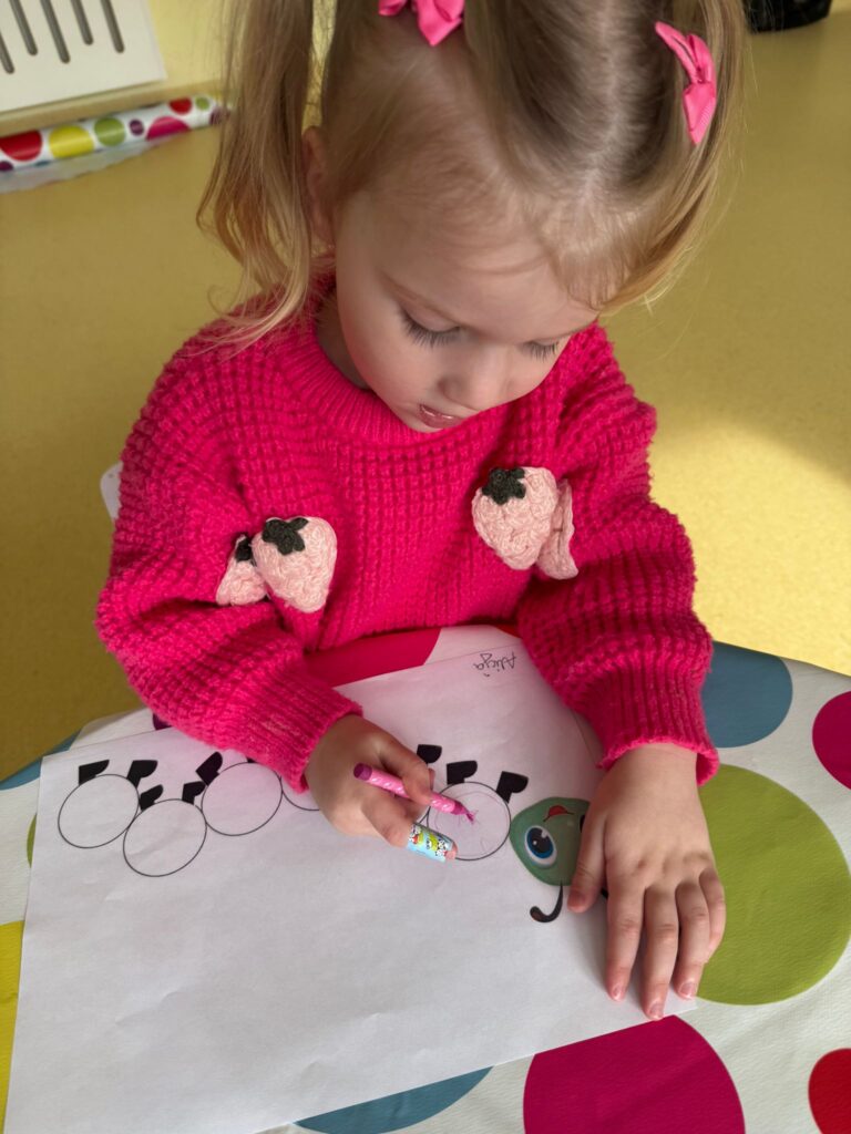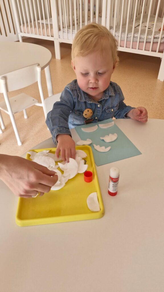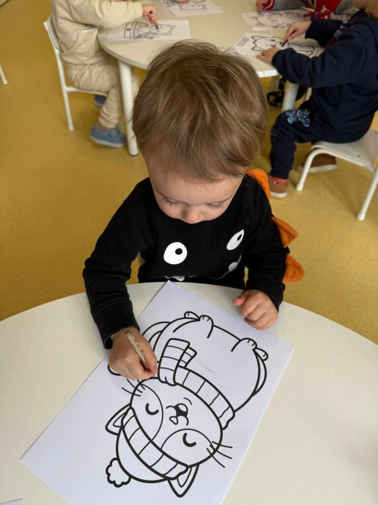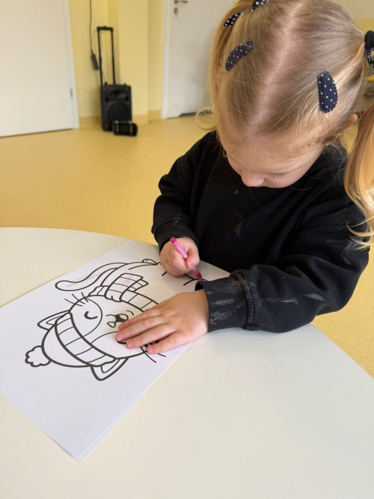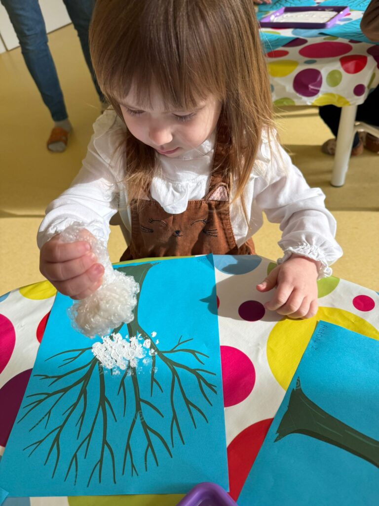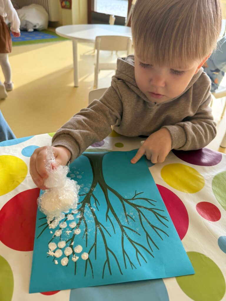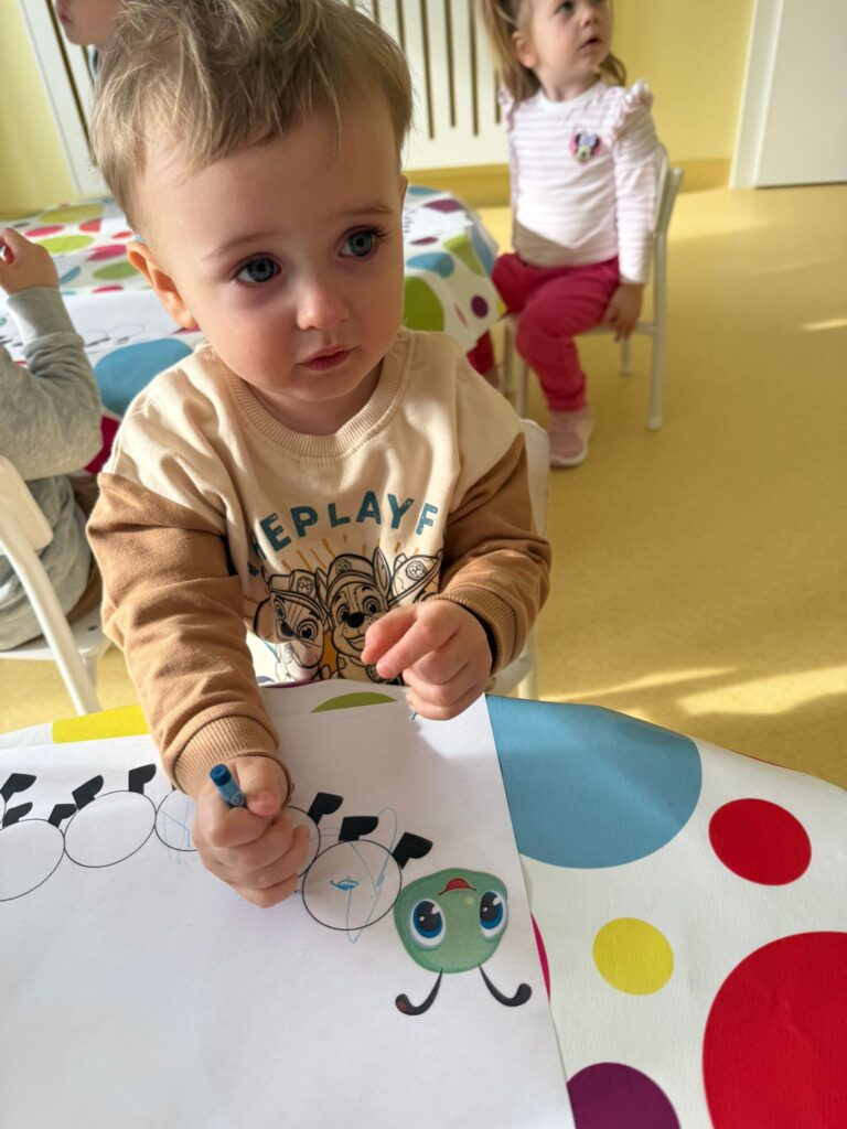 Nasze małe rączki intensywnie pracowały podczas zajęć plastycznych. Powstały piękne zaśnieżone drzewka, delikatne przebiśniegi, kolorowe gąsienice, urocze kotki oraz wiele innych kreatywnych prac. Każde dzieło było wyjątkowe i wykonane z ogromnym zaangażowaniem.