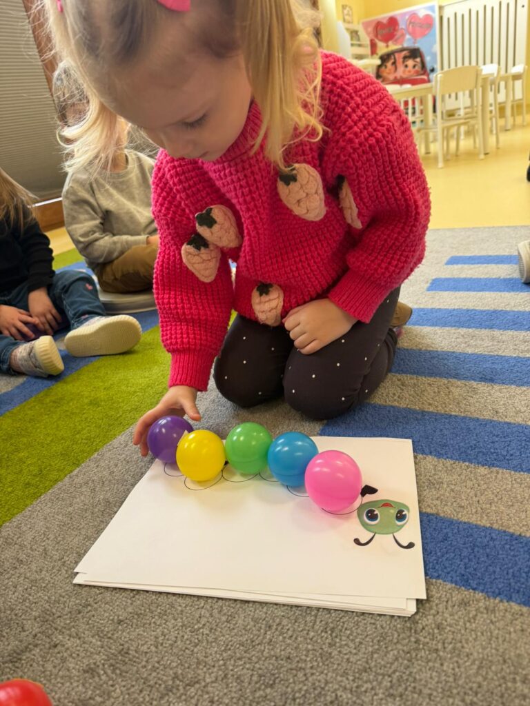 Już na początku miesiąca w naszej sali pojawiła się wyjątkowa „zaspa śnieżna”. Po całej podłodze rozsypane zostały paski papieru symbolizujące śnieg. Dzieci z ogromnym entuzjazmem rzucały się „śnieżkami”, podrzucały papier do góry, obserwując jak powoli opada, a nawet urządzały sobie przejażdżki na „sankach”. Była to nie tylko wspaniała zabawa, ale także ćwiczenie koordynacji ruchowej i integracji sensorycznej. Radości nie było końca!