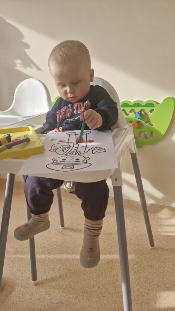 Podczas zimowych zajęć sensorycznych z pingwinkiem nasi podopieczni poznawali różnorodne faktury, ćwiczyli małą motorykę oraz rozwijali zmysły poprzez dotyk, ruch i obserwację. Takie aktywności wspierają wszechstronny rozwój dziecka i jednocześnie sprawiają mu ogromną frajdę.