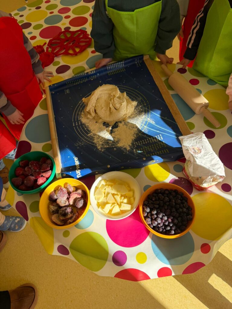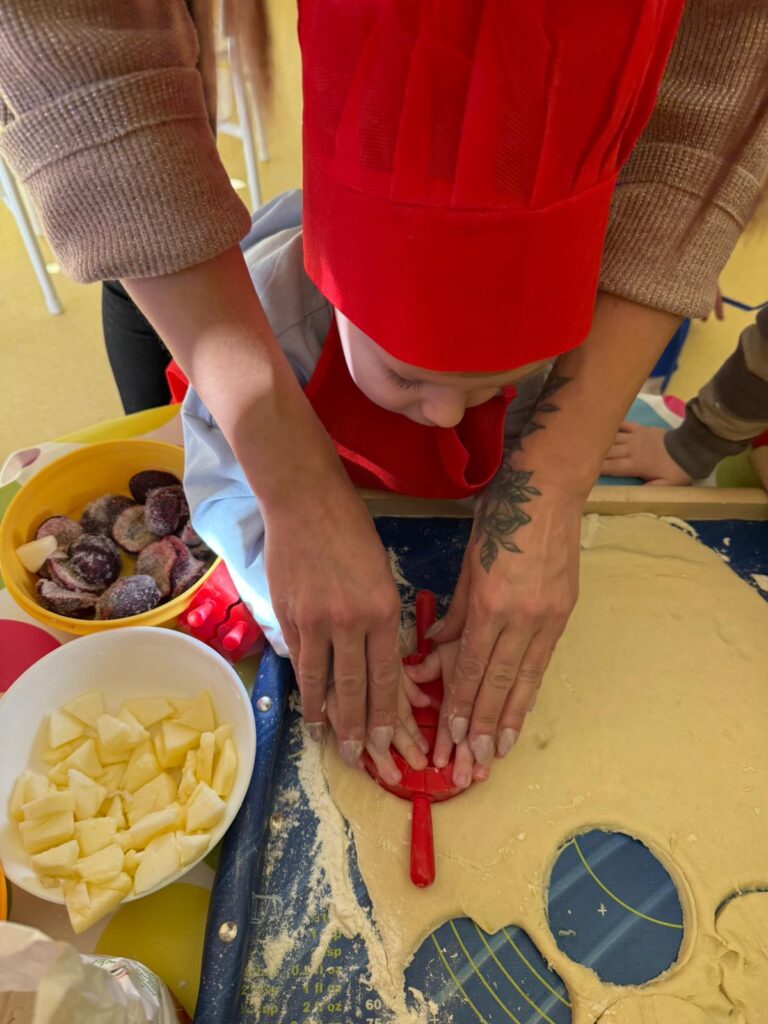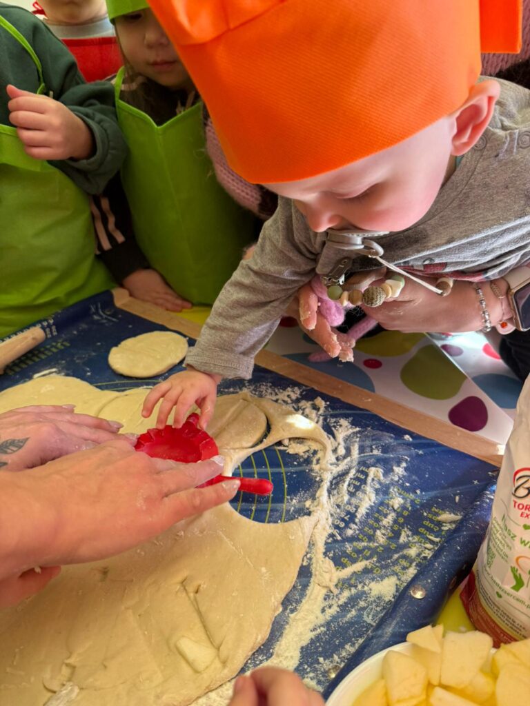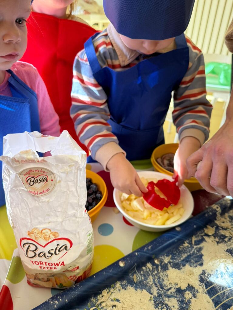 Nie zabrakło również zajęć kulinarnych – wspólnie lepiliśmy pierożki z owocami. Dzieci ćwiczyły sprawność dłoni, uczyły się współpracy i z dumą obserwowały efekty swojej pracy. Smakowało wyśmienicie!