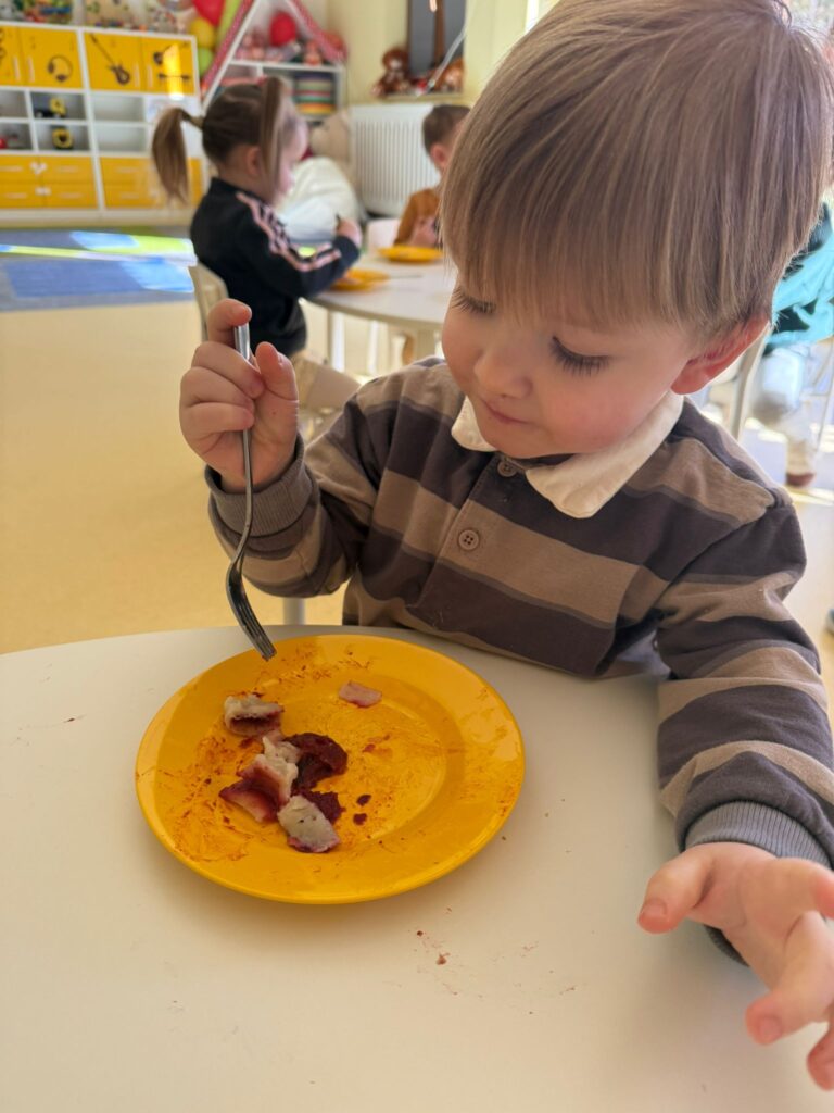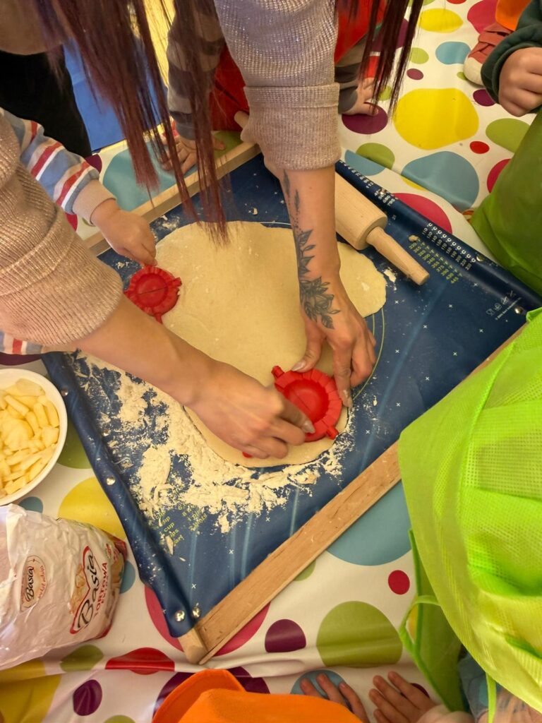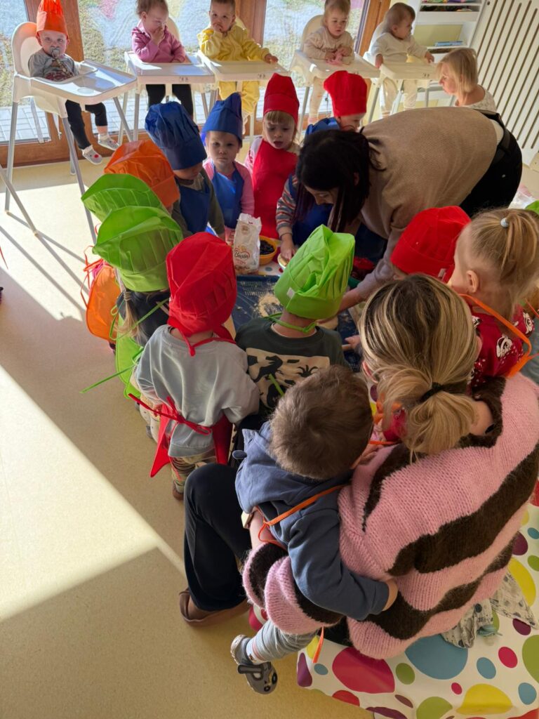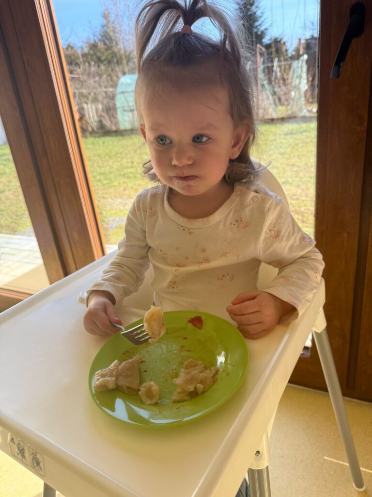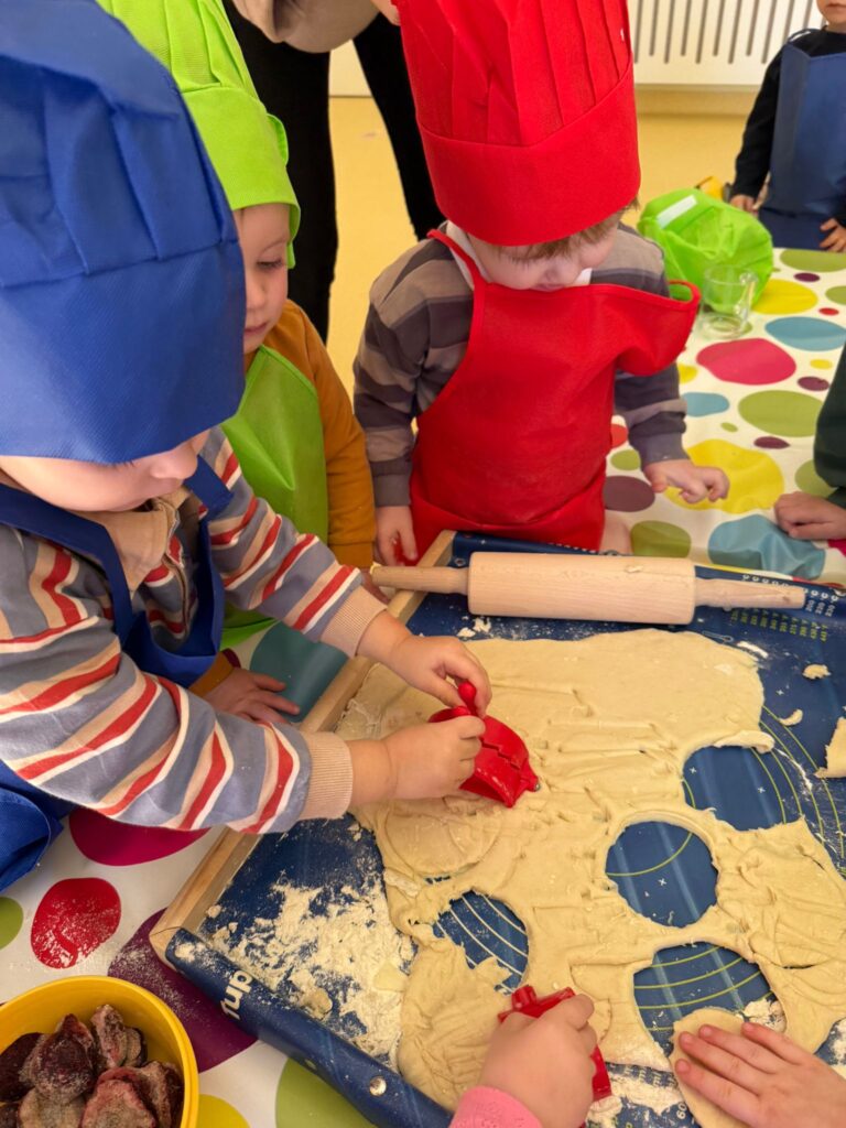 Nie zabrakło również zajęć kulinarnych – wspólnie lepiliśmy pierożki z owocami. Dzieci ćwiczyły sprawność dłoni, uczyły się współpracy i z dumą obserwowały efekty swojej pracy. Smakowało wyśmienicie!
