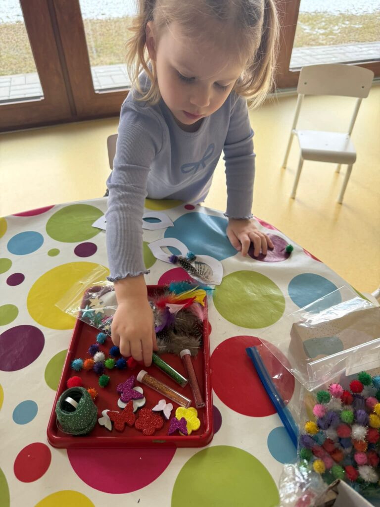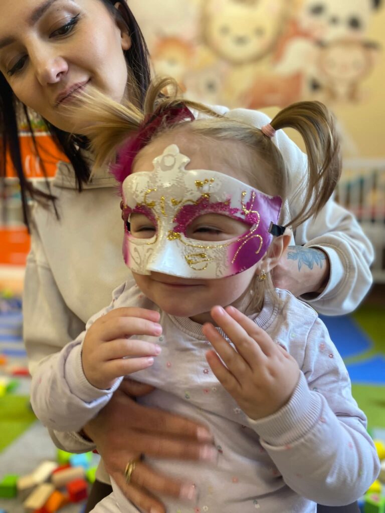 W lutym nie mogło zabraknąć karnawałowego świętowania. Przygotowywaliśmy kolorowe maski, rozmawialiśmy o przebraniach, a podczas balu karnawałowego tańczyliśmy i bawiliśmy się przy muzyce. Sala wypełniła się śmiechem i barwami, a dzieci z dumą prezentowały swoje stroje.