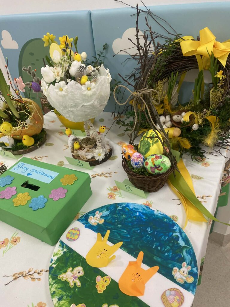 Za nami rozstrzygnięcie Konkursu na Ozdobę Wielkanocną! Jesteśmy pod ogromnym wrażeniem Waszej kreatywności. Nasz korytarz zmienił się w piękną, wiosenną krainę pełną kolorowych pisanek, puszystych zajączków i pomysłowych stroików. 🌸🌼