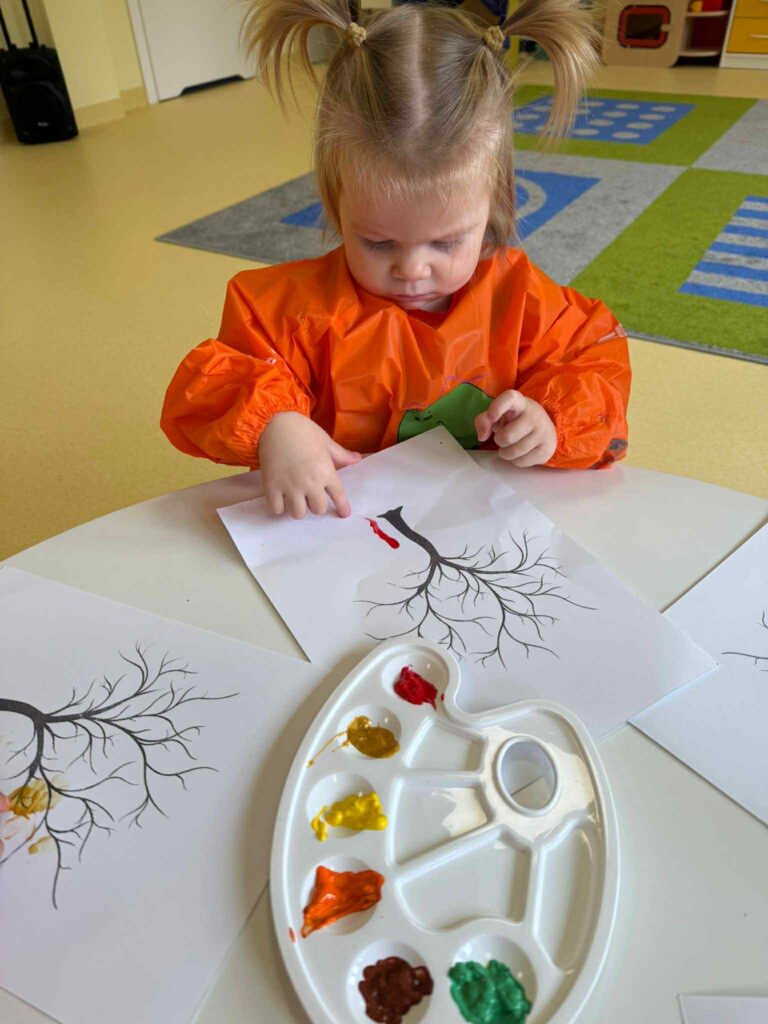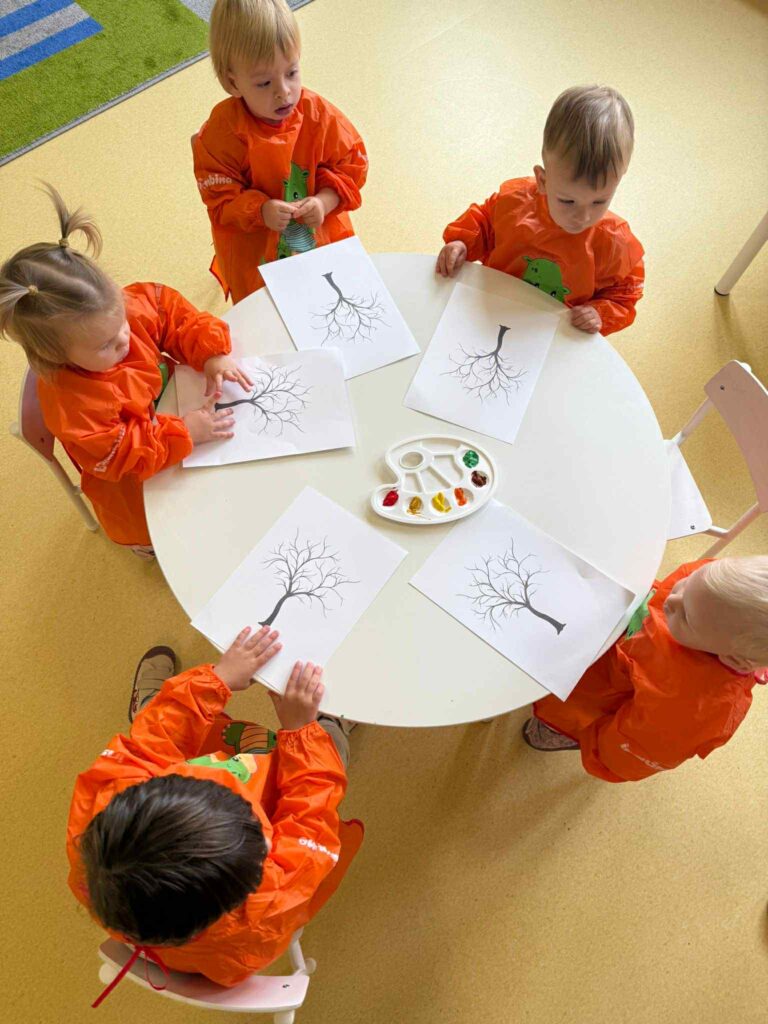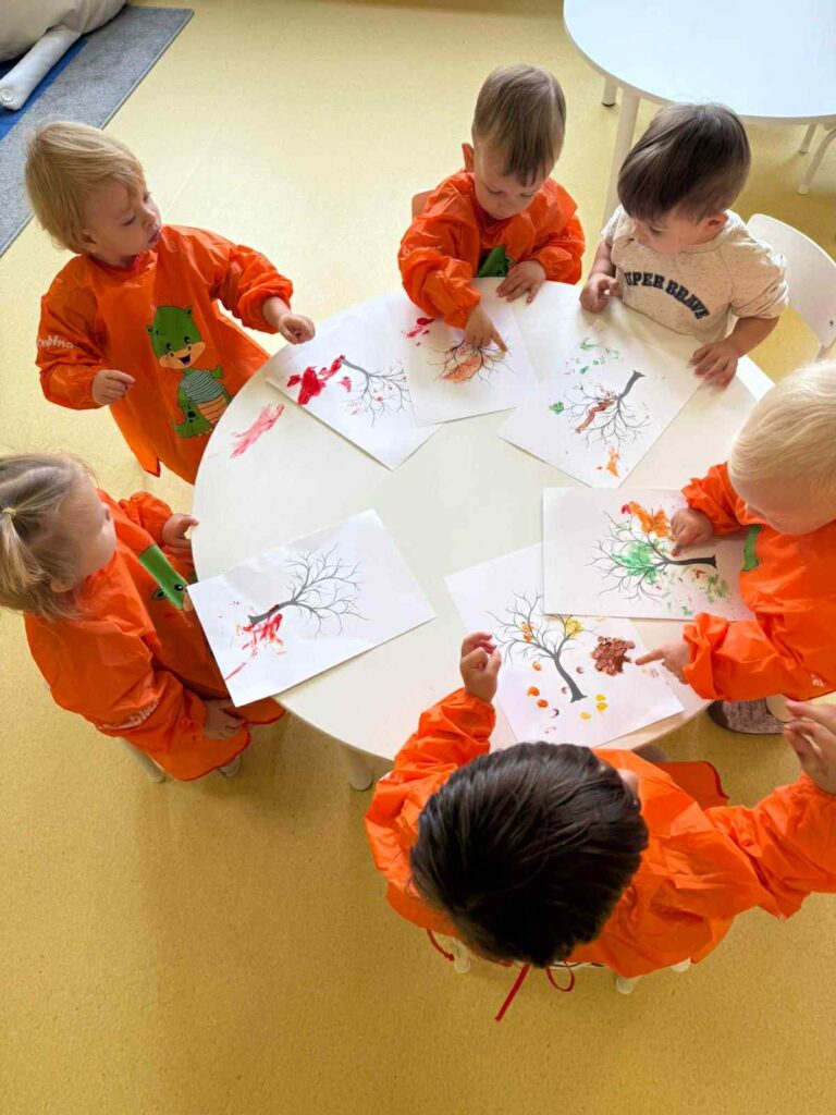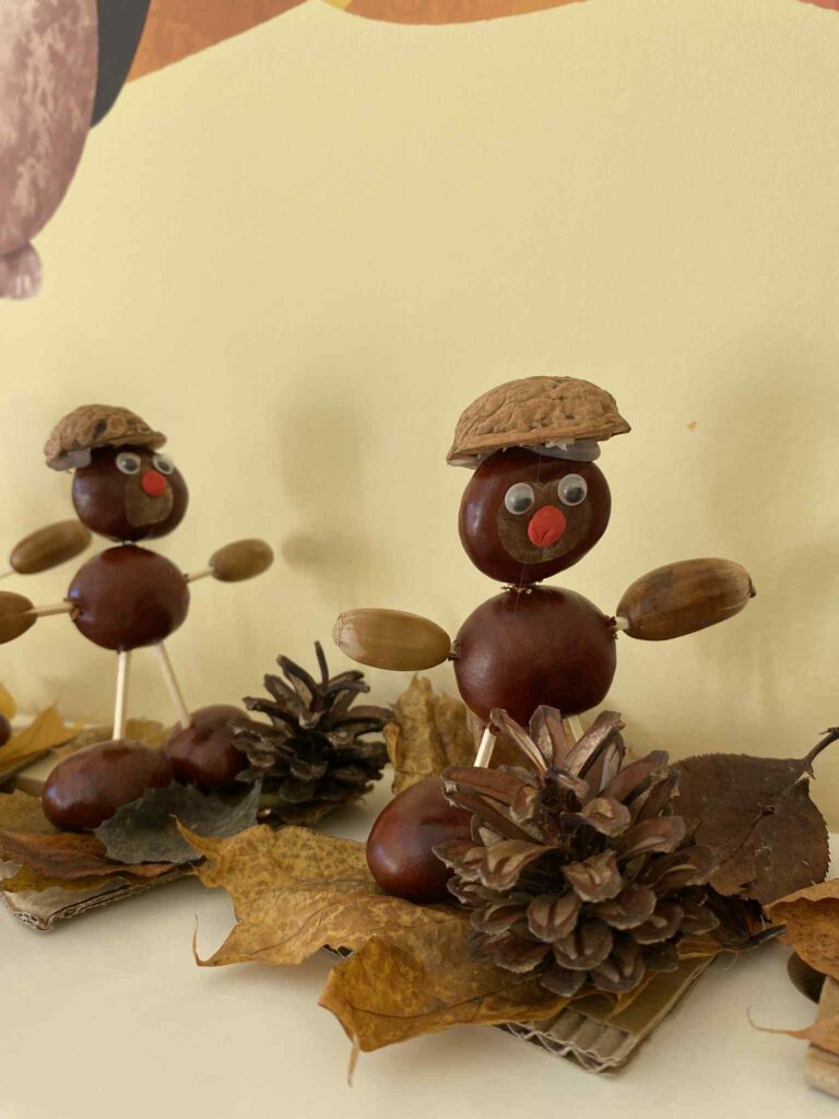 🍁 Jesień w pracach plastycznych – kolorowe liście, drzewa, ludziki z kasztanów.